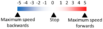 where +5 is maximum forward speed, -5 is maximum reverse speed and 0 is stop.