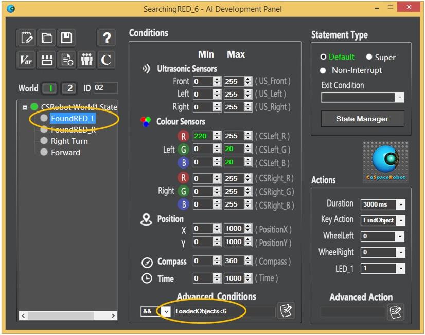 Load the “SearchingRED_6.dll” to the RED robot and monitor its