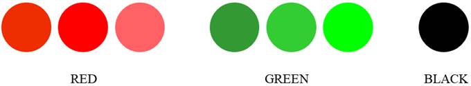 THREE Objects, RED, GREEN, and BLACK objects, located in random location