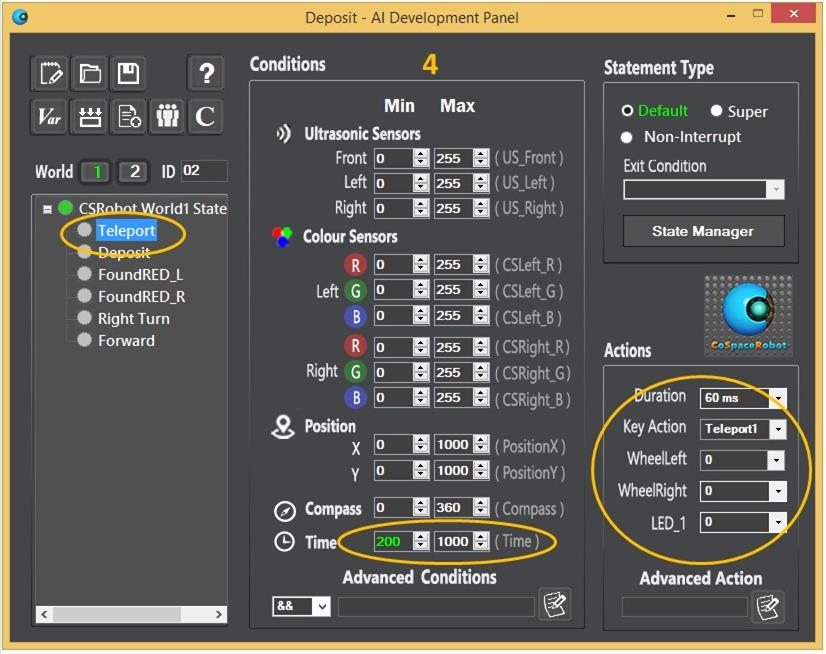 robot will teleport at 200 sec after the game begins. After teleportation, the