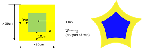 trap is 10cm x 10cm. The traps can be any colour. The shape of traps is not