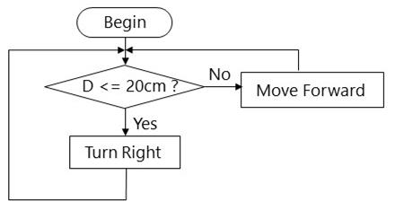 make a right turn if the front ultrasonic sensor reading is less than 20 cm (it