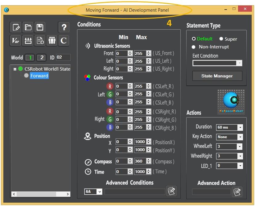 two actions – Moving forward and Turning right. Therefore, two statements need