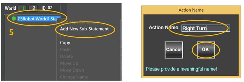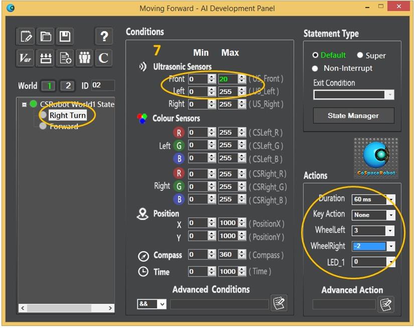 Assign conditions and actions to the “Right Turn” statement.