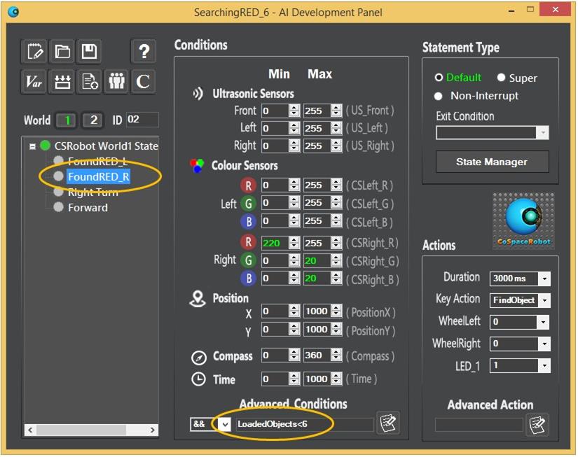 Load the “SearchingRED_6.dll” to the RED robot and monitor its