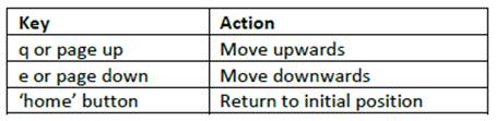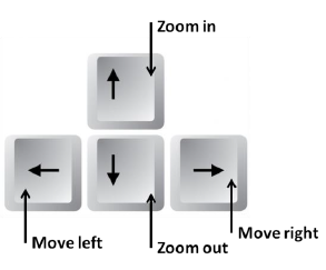 Arrow keys can be used to zoom and also to move around in the environment. You can also use the mouse to move around by clicking and dragging. The arrow keys work as follows: