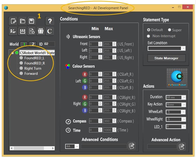 Load the “SearchingRED_AC.dll” to the RED robot and monitor its
