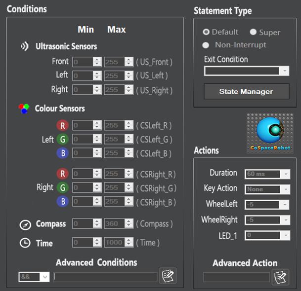 write partial C code in the advanced conditions / advanced actions. Of course,