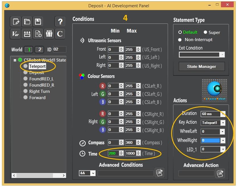 teleport at 200 sec after the game begins. After teleportation, the robot in